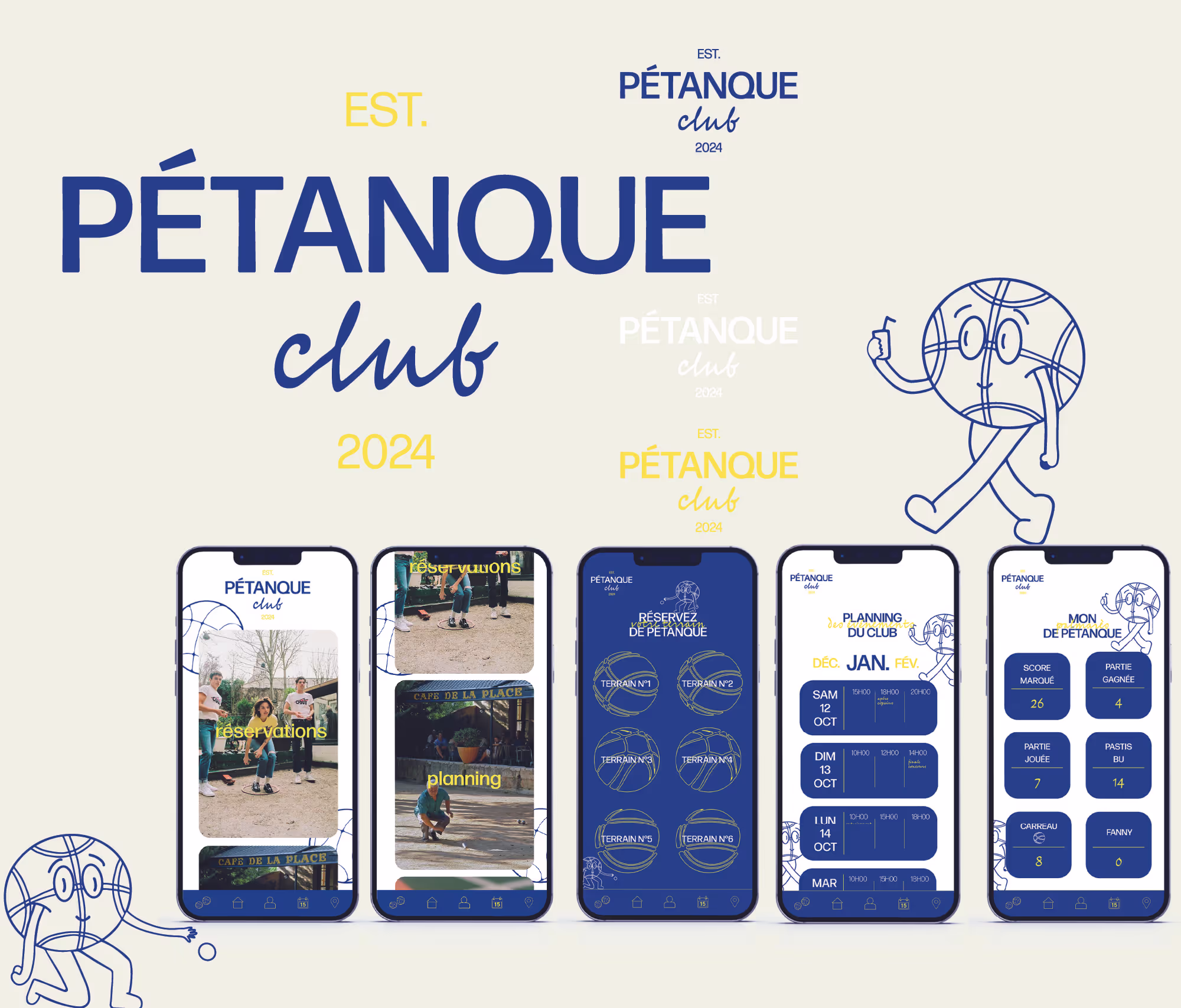 Projet les briefs créatifs Réalisation d’un logo pour un club de pétanque, ainsi que la maquette d'une application mobile. Les valeurs de ce club sont la convivialité, la coopération, le partage et la passion.